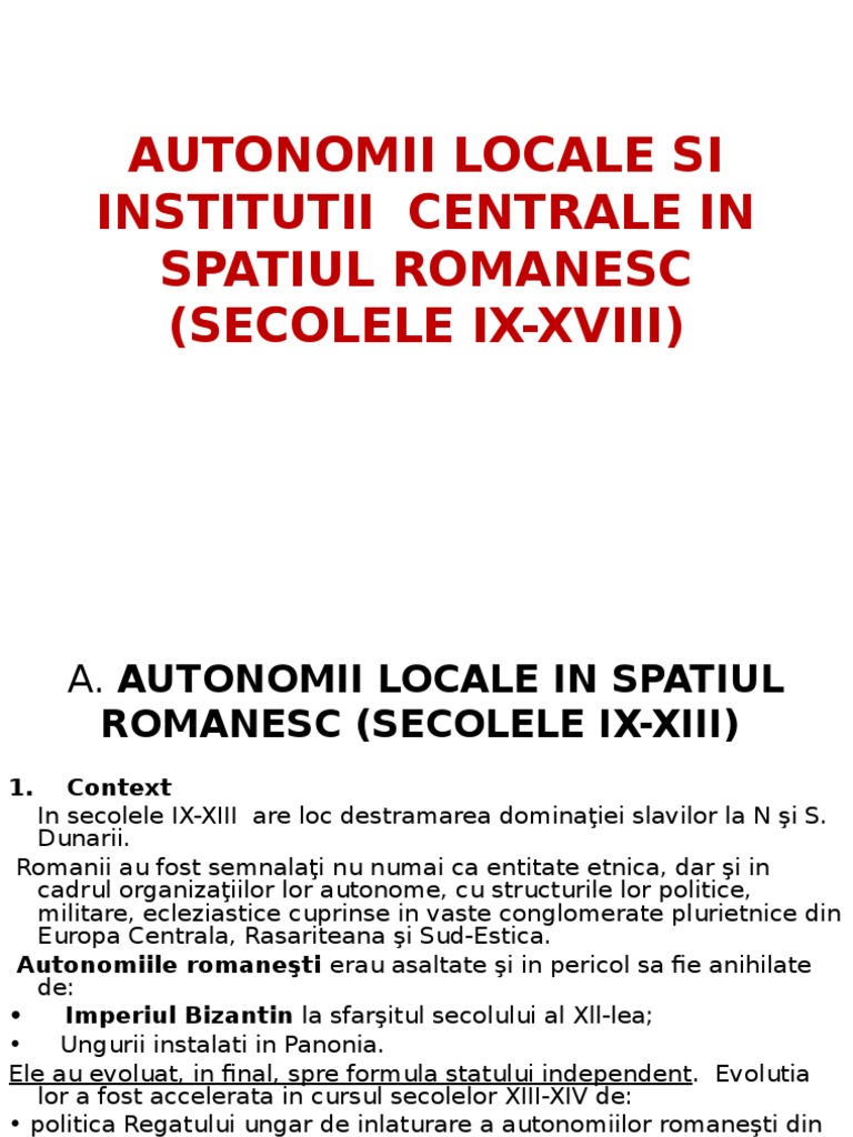 Eseu Despre Autonomii Locale și Instituții Centrale Din Spațiul Romanesc In Secolele Al Ix Lea Al Xvi Lea Liceunet Ro
