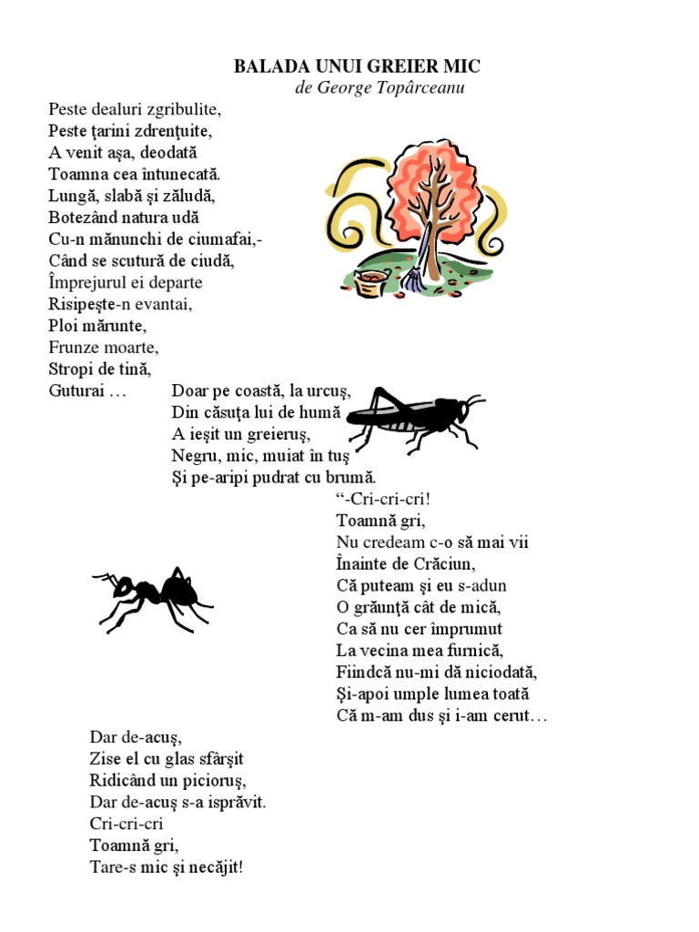8 0 10 103 de voturi. Versuri balada unui greier mic de george topârceanu. Peste dealuri zgribulite peste ţarini zdrenţuite a venit aşa deodată toamna cea întunecată. Balada unui greier mic.
