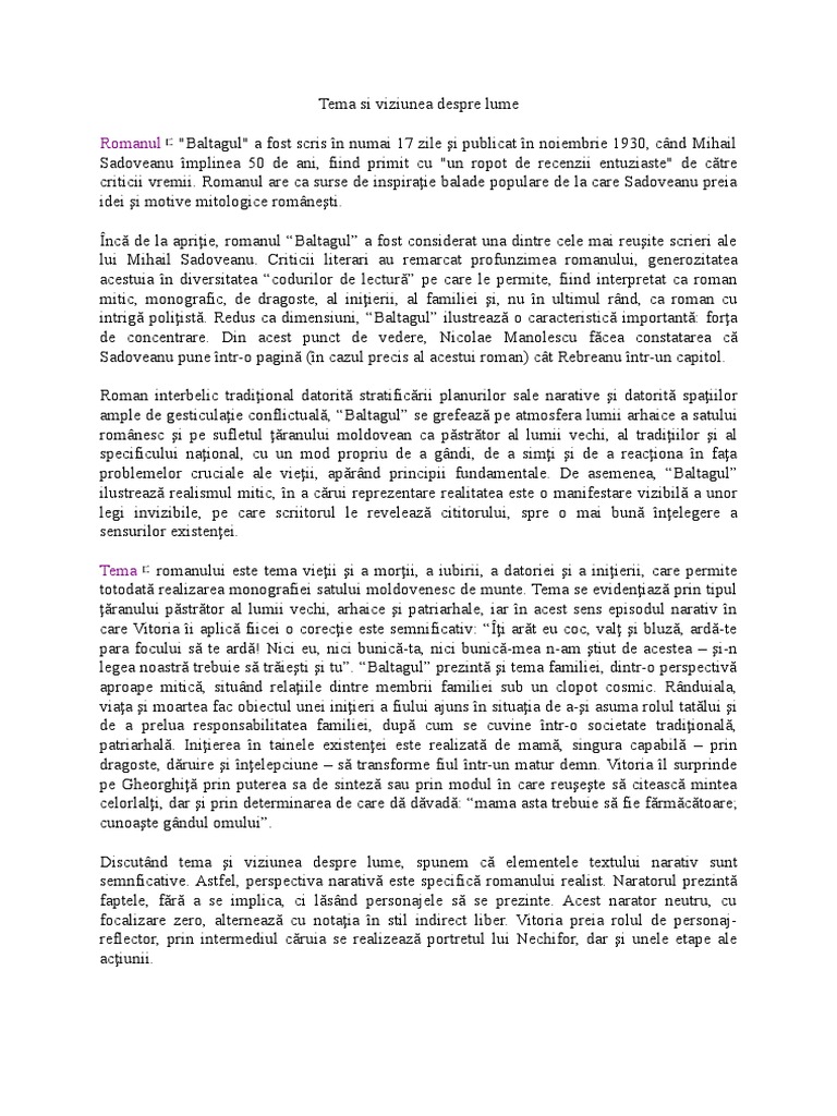 Tema Si Viziunea Despre Lume Baltagul Pdf Document