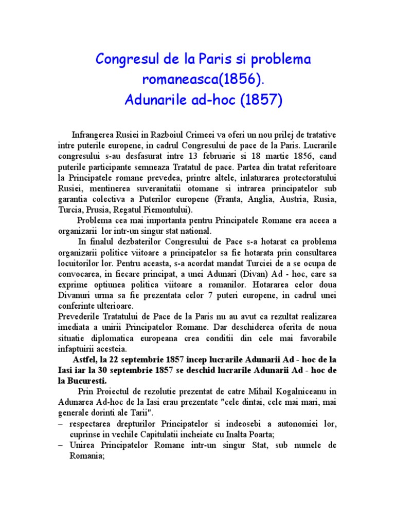 File De Istorie Conventia De La Paris Din 1858 Calarasi Ziare Com