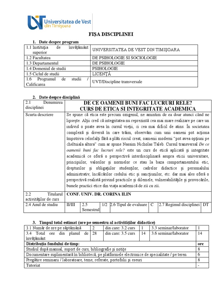Microsoft word fisa disciplinei etica è i integritate academica lsr author. Cadru didactic cercetător consilier filosofic competențe transversale 4. 301 moved permanently. Integritate academică și de familiarizarea cu câteva concepte etice fundamentale atunci ar putea fi abordate preponderent la curs temele dezvoltate în capitolele 1 și 3 iar din ultimele două capitole în special secțiunile dedicate avertizării de integritate accesului la resurse plagiatului și originalității rezultatelor.