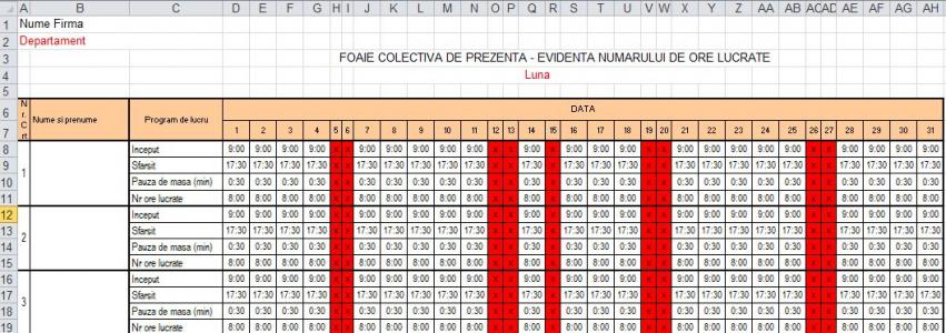 Model Pontaj Nou Xls