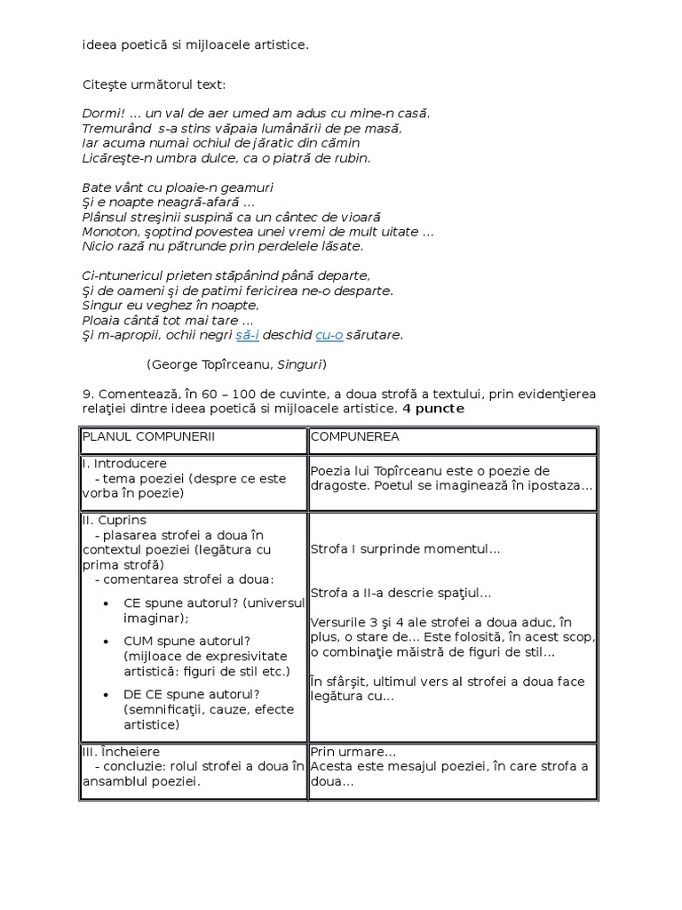 Subiectul al ii lea 10 puncte comentează în minimum 50 de cuvinte textul de mai jos evidenţiind relaţia dintre ideea poetică şi mijloacele artistice. Ideea poetică reprezintă ideea în jurul căreia este realizată poezia strofa la ce anume se referă poetul în strofa respectivă. Trimisă pe 21 septembrie.