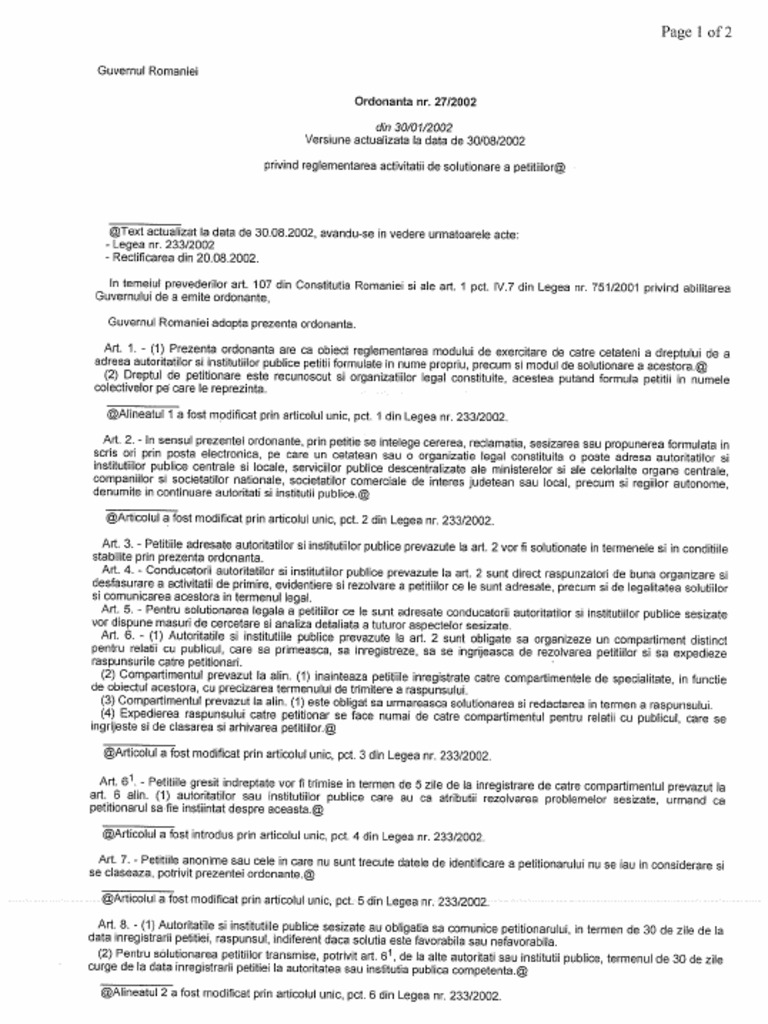 150 din 1 martie 2007 si ulterior a mai fost modificata prin ordonanta de urgenta a guvernului nr. 202 2002 din 19 aprilie 2002 republicat ă privind egalitatea de şanse şi de tratament între femei şi b ărba ţi act de baz ă b. 452 din 25 mai 2006 a fost rectificatã în monitorul oficial al româniei partea i nr. Include modificările aduse prin următoarele acte.