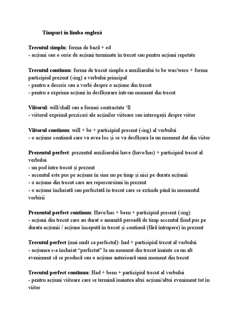 Timpurile In Engleza