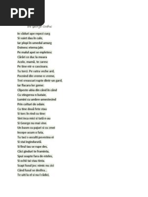 Iar flacara lor geme. Pe malul apei se mpletesc carari ce duc la moara acolo mama te zaresc pe tine ntr o cascioara. și gătește așa deodată pod întreg dintr o bucată.