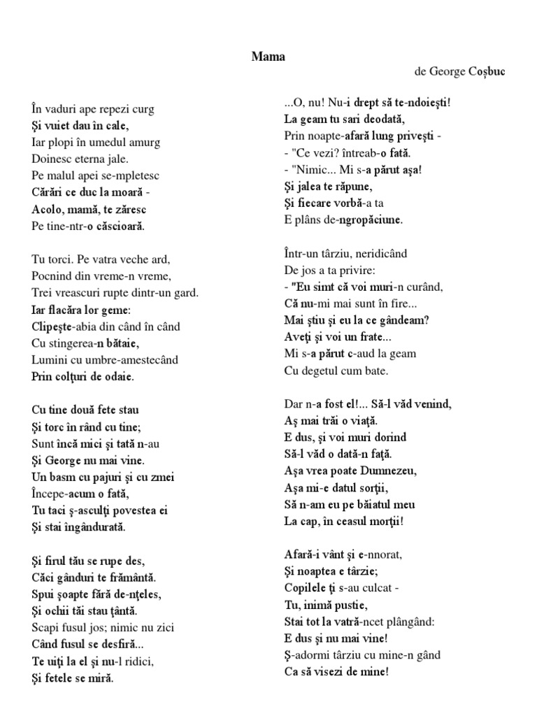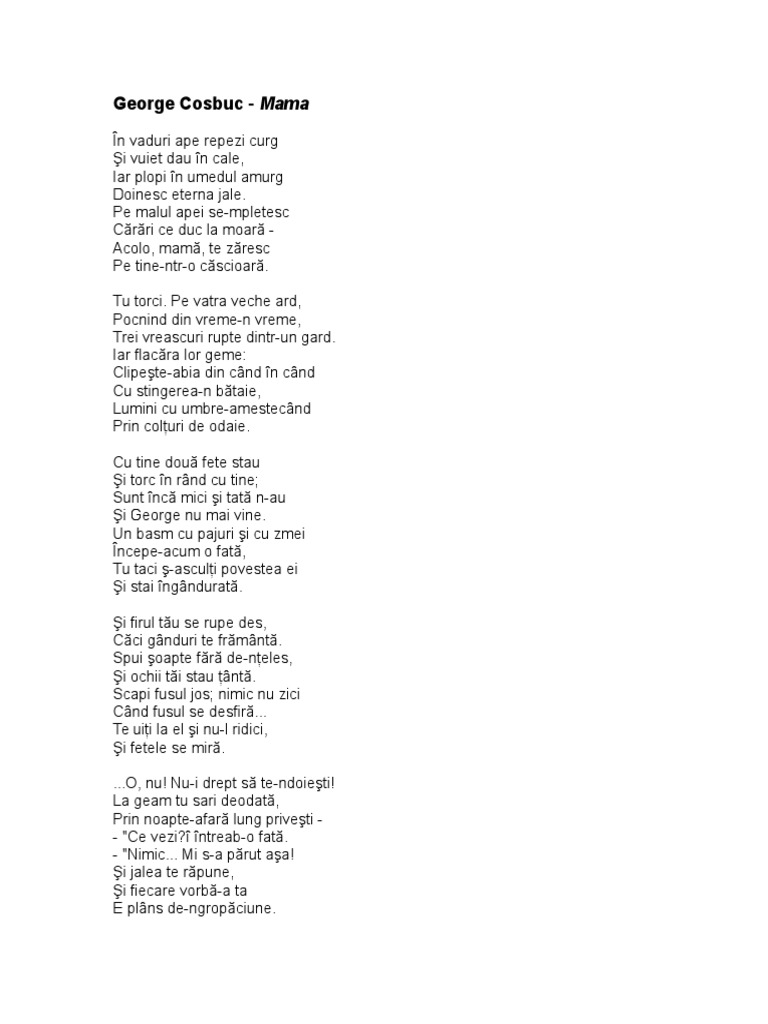 Mama de george cosbuc. George coşbuc 1866 1918. Coșbuc was born in hãrdãu năsăud bistriţa năsăud county romania and died in bucharest. E plin de oameni câmpul tu doino n rând cu ei. Pe malul.