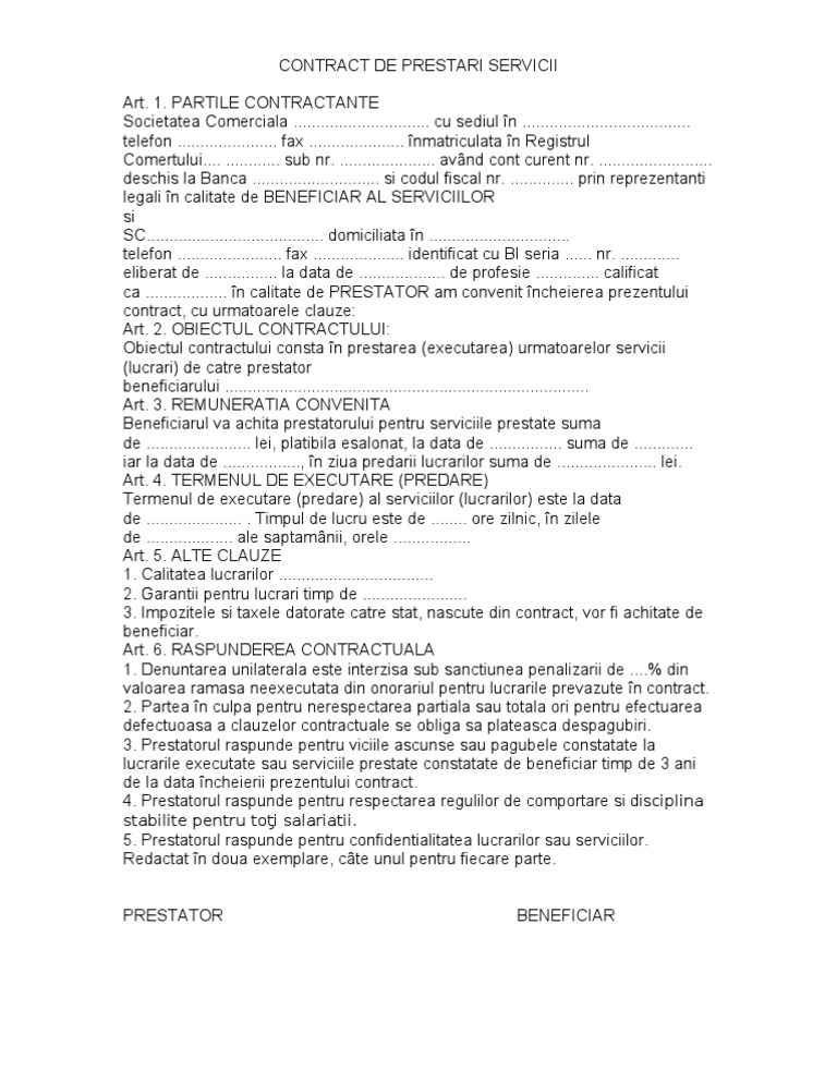 Formular Contract Prestari Servicii Curatatorie Chimica