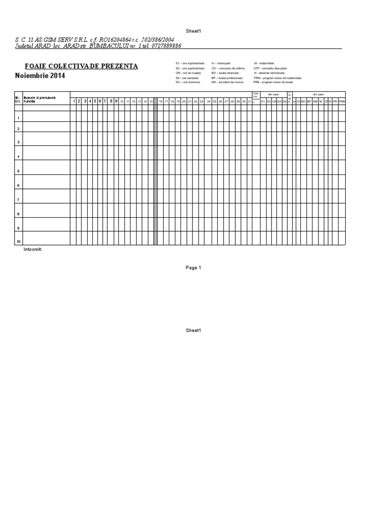 Model Pontaj Foaie Prezenta Vatamanu Paula Academia Edu