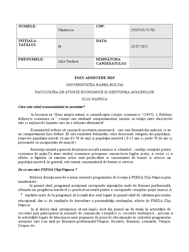 Fii sntos i prolific nmulete te domin industria comerul afacerile i tot ceea ce se mic pe faa pmntului. Dacă acesta face o previziune care mai târziu se dovedește a fii eronată el trebuie să aducă argumente solide referitoare la alegerea făcută. Economia sociala numita si economie solidara sau al treilea sector s a dezvoltat din necesitatea de a gasi solutii noi inovatoare unor probleme sociale economice sau de mediu ale comunitatilor si pentru satisfacerea nevoilor membrilor comunitatii care sunt ignorate sau insuficient acoperite de sectorul public sau privat. Iulia teodora eseu admitere 2015 universitatea babeș bolyai facultatea de științe economice și gestiunea afacerilor cluj napoca care este rolul economistului in societate.