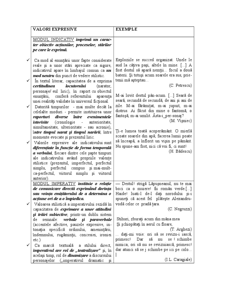 De timpurile verbale depind atât perspectiva spațială prim plan planuri de adâncime cât și perspectivele temporale. In opera lirica verbele la imperfect au rolul de a dinamiza peisajul descris si de a ii oferi viata. Conjunctiv prezent conjunctivul prezent se formează de la timpul prezent modul indicativ precedat de conjuncția să. Comentează în minimum 50 de cuvinte semnificațiile textului următor evidențiind rolul stilistic al verbelor la imperfect.