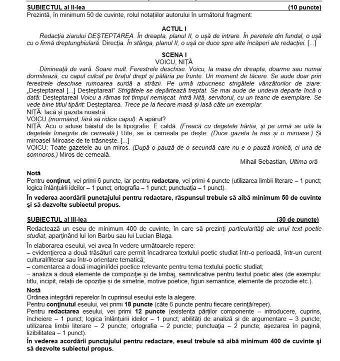 Subiecte Simulare Bac 2018 Subiectele Si Baremul De La Simularea La Limba Si Literatura Romana Sustinuta De Elevii De Clasele A Xi A Si A Xii A Hotnews Mobile